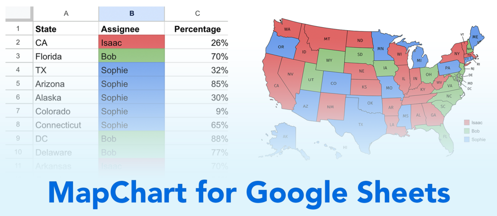 The Premium version of the MapChart add-on for Google Sheets (link, website) gets you: